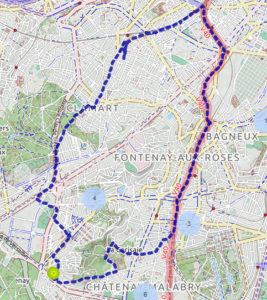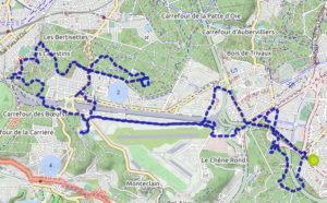 Avant de passer sous l’A86, on bifurque à droite sur une belle voie Vélo qui nous ramènera à la Cours Roland ou l’on terminera notre grand tour de l’aéroport de Villacoublay pour retraverser la forêt de Verrières puis la butte rouge pour retrouver nos pénates.
