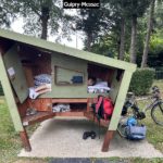 Nous avions pris des cabanons spécial Cyclo-randonneur au Camping municipal très bien tenu. Braséro collectif électronique dont nous n’avons pas fait usage. Calme et propre.