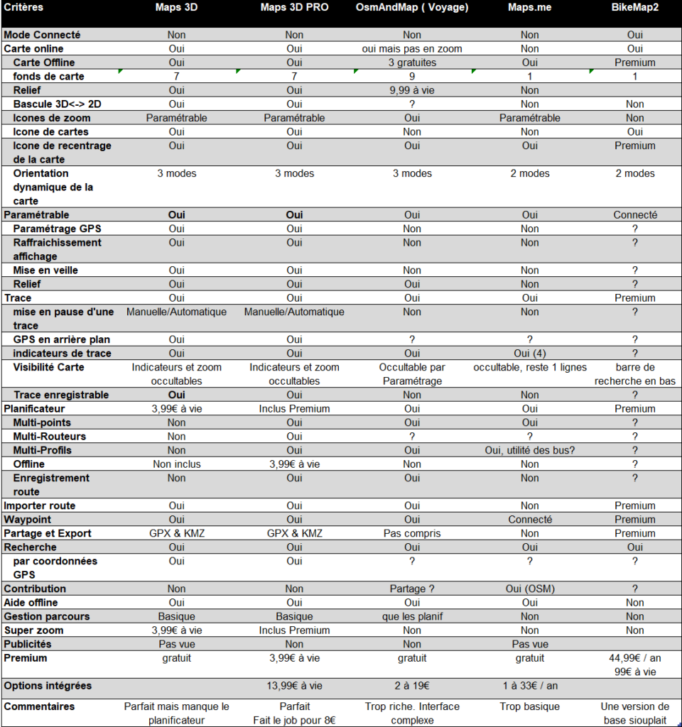 A l’usage, MAPS 3D a finalement eu ma préférence. L’application est aboutie et les mises à jour peu nombreuses. Je suis passé à la version PRO d’ailleurs afin d’avoir le planificateur. Par contre elle n’existe que sous IOS. Locus Map semble être son pendant sous Android.